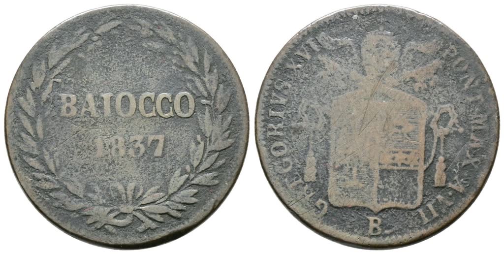 STATO PONTIFICIO. BOLOGNA. Gregorio XVI (1831-1846). Baiocco 1837.Pag. 264. CU. MB