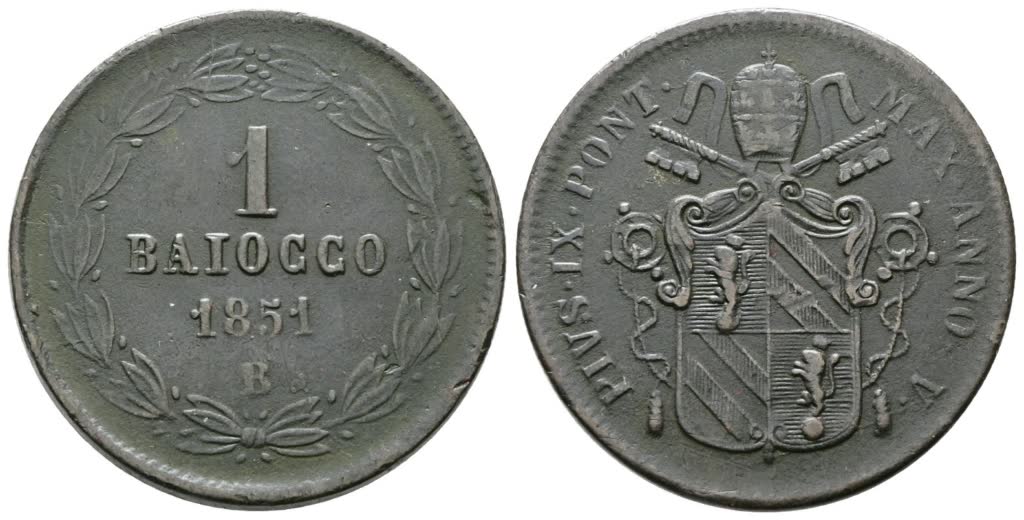 Lot 685 | STATO PONTIFICIO. BOLOGNA. Pio IX (1846-1870). Baiocco 1851. KM# 1345. CU. BB