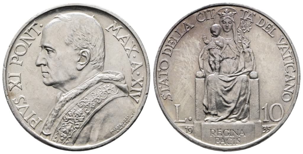 VATICANO. Pio XI (1929-1938). 10 lire 1935. Gig. 17; Ag; 10gr. SPL/FDC