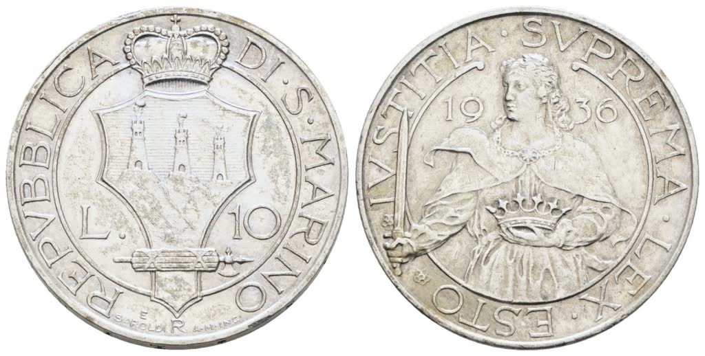 SAN MARINO. Vecchia monetazione (1864-1938). 10 lire 1936. Ag; 10gr; Gig.14; Q.SPL