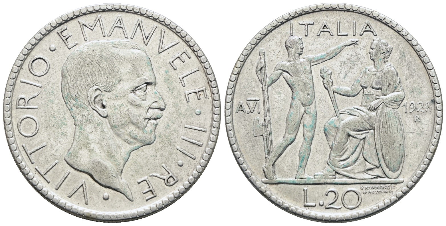 REGNO D'ITALIA. Vittorio Emanuele III (1900-1943). 20 lire 1928 "Littore". Ag; 15gr; Gig.37; NC; BB/SPL