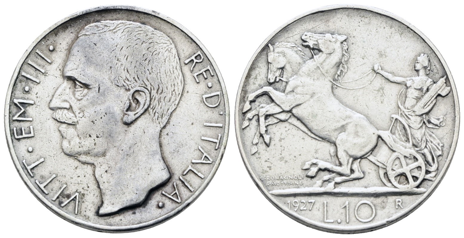 Lot 765 | REGNO D'ITALIA. Vittorio Emanuele III (1900-1943). 10 lire 1927 "Biga"**. Ag; 10gr; Gig.56a; BB+