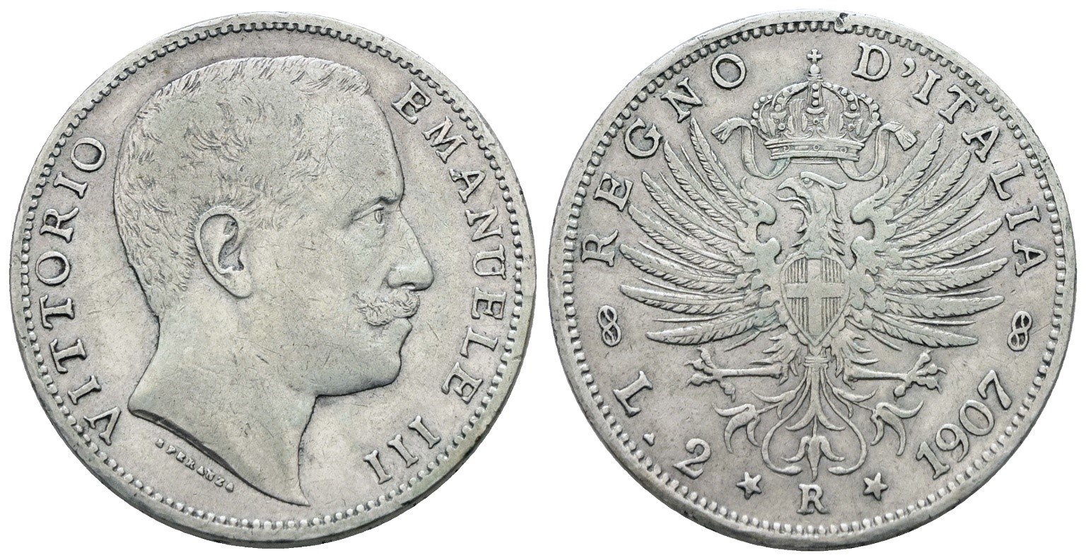 REGNO D'ITALIA. Vittorio Emanuele III (1900-1943). 2 lire 1907 "Aquila sabauda". Ag; 10gr; Gig. 95; BB