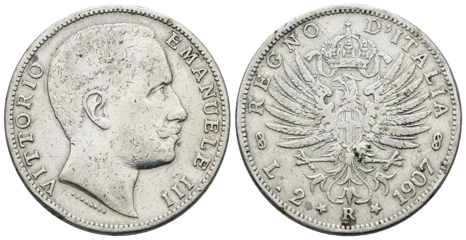 REGNO D'ITALIA. Vittorio Emanuele III (1900-1943). 2 lire 1907 "Aquila sabauda". Ag; 10gr; Gig. 95; Q.BB
