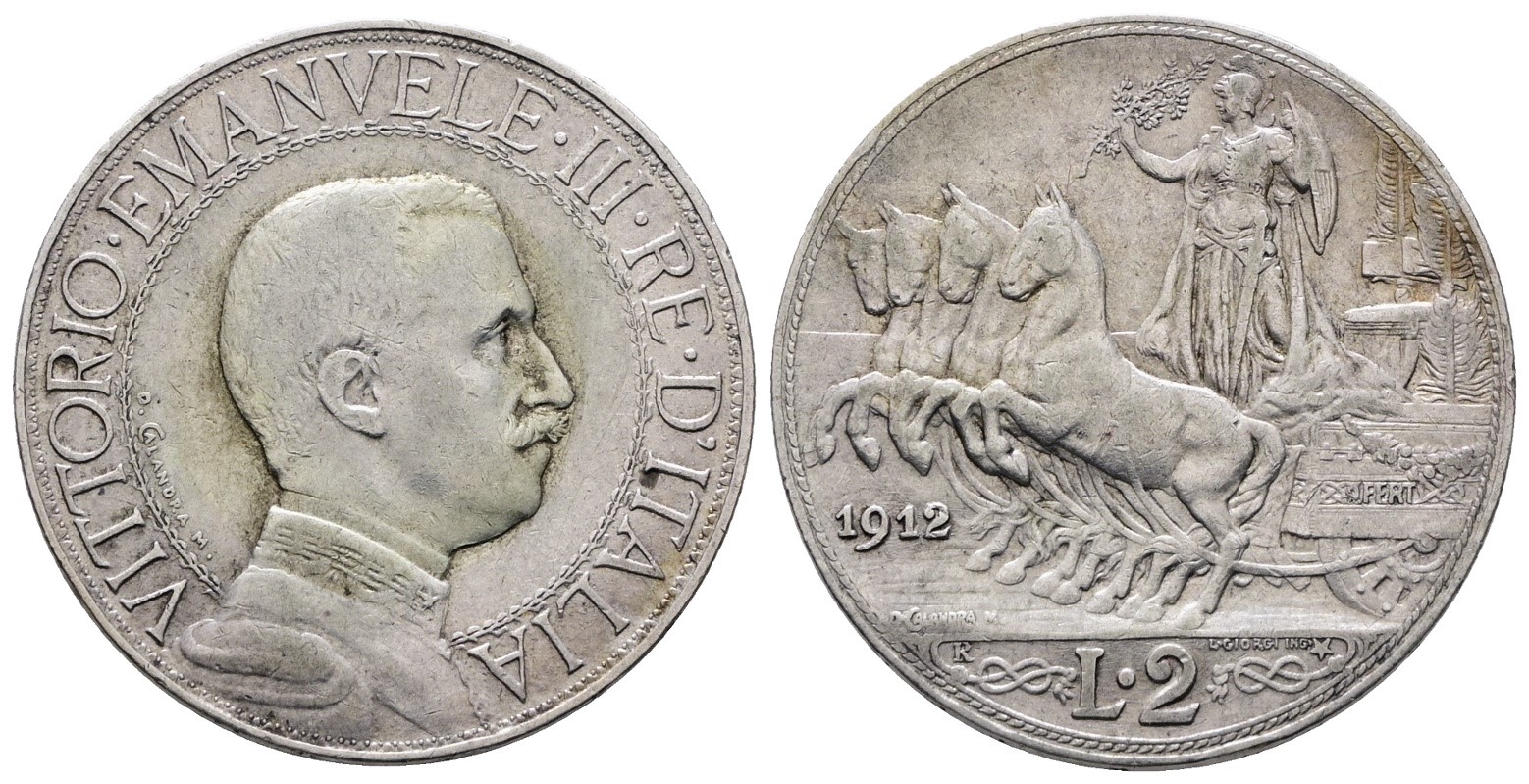 REGNO D'ITALIA. Vittorio Emanuele III (1900-1943). 2 lire 1912 quadriga veloce. Gig. 99; Ag; 10gr. BB