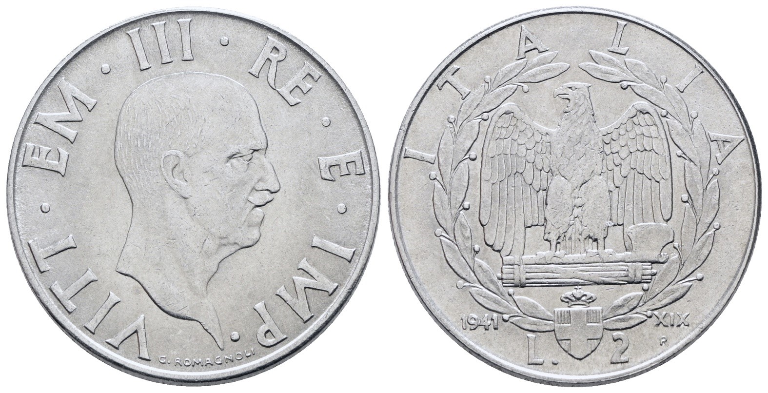 REGNO D'ITALIA. Vittorio Emanuele III (1900-1943). 2 lire 1941 "Impero". Ac; 10gr; Gig. 122; NC; SPL