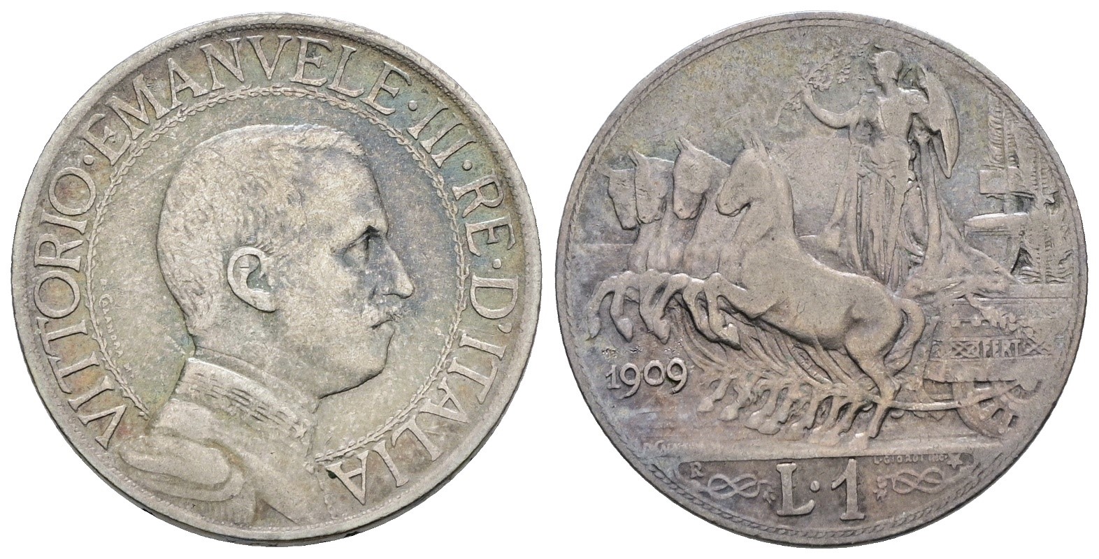 REGNO D'ITALIA. Vittorio Emanuele III (1900-1943). 1 lira 1909. Ag; 5gr; Gig.133; NC; SPL, patina iridescente.