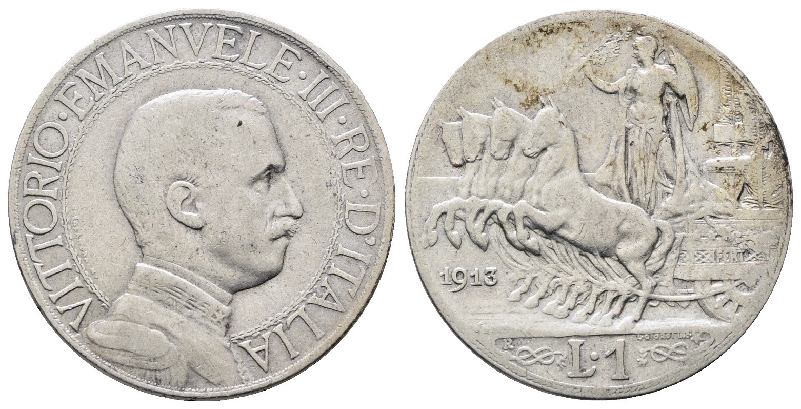 REGNO D'ITALIA. Vittorio Emanuele III (1900-1943). 1 lira 1913 quadriga veloce. Gig. 136; Ag; 5gr. BB