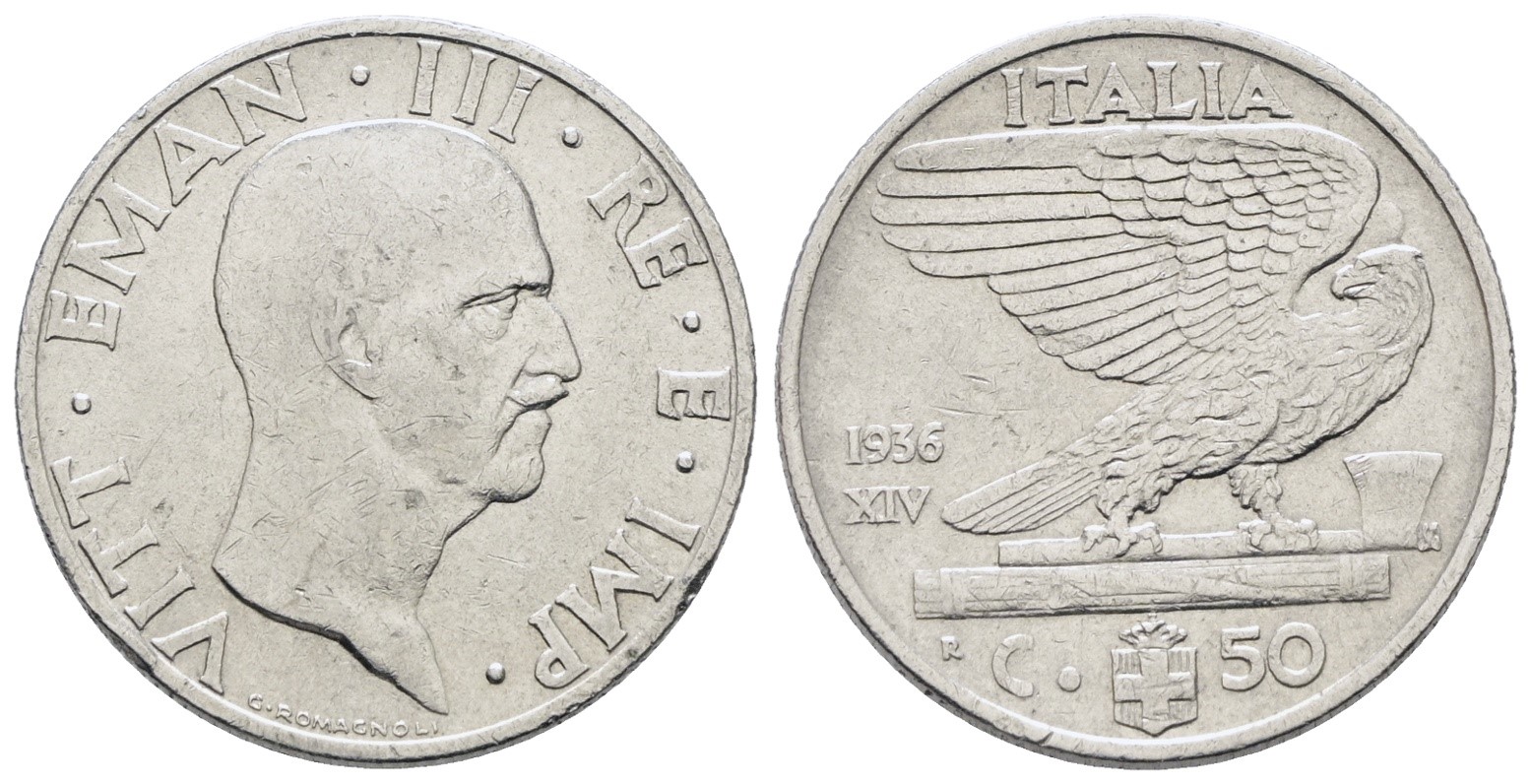 REGNO D'ITALIA. Vittorio Emanuele III (1900-1943). 50 centesimi 1936 "Impero". Ni; 6gr; Gig. 182; Raro; BB+