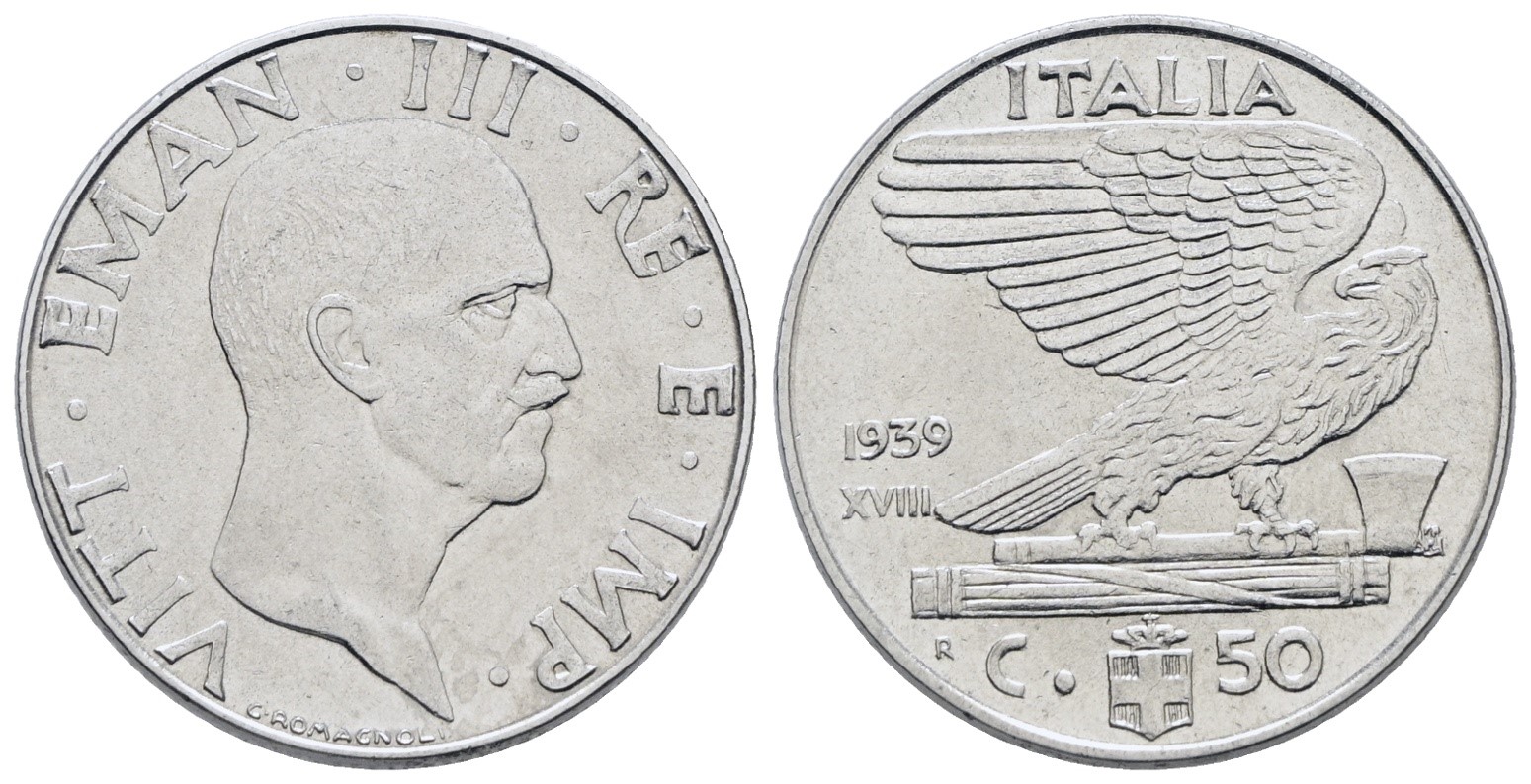 REGNO D'ITALIA. Vittorio Emanuele III (1900-1943). 50 centesimi 1939 "Impero". Ac; 6gr; Gig. 184a; NC; Q.FDC