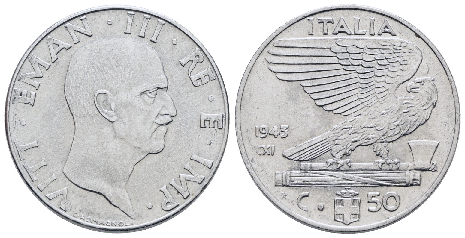 REGNO D'ITALIA. Vittorio Emanuele III (1900-1943). 50 centesimi 1943 "Impero". Ac; 6gr; Gig. 188; Raro; SPL+