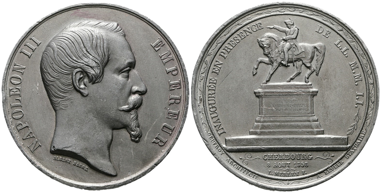 FRANCIA. Medaglia Monumento equestre Napoleone III a Cheerbourg 1858. Pb. 60nmm. BB+/qSPL