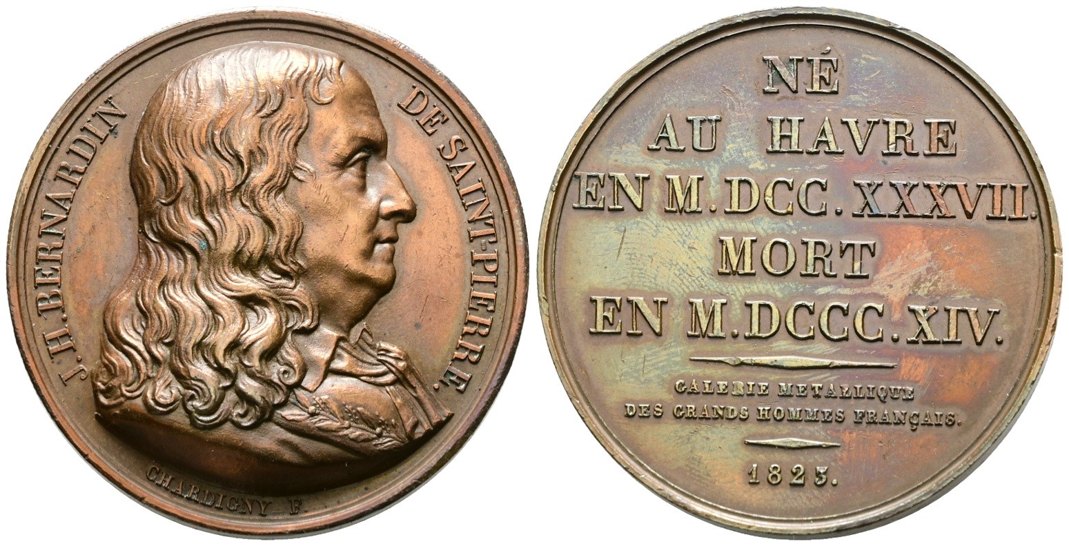 PERSONAGGI. Medaglia J.H. Bernardin de Saint-Pierre 1825. Ae; 36,34gr; 41,19mm SPL