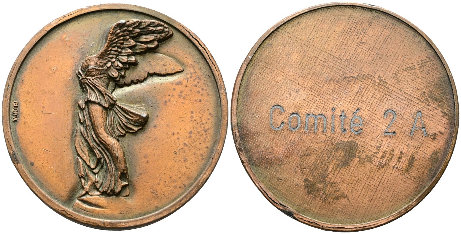 PERSONAGGI. Medaglia premio con la Nike di Samotracia. Al R/ Comité 2A. AE. 68mm. BB