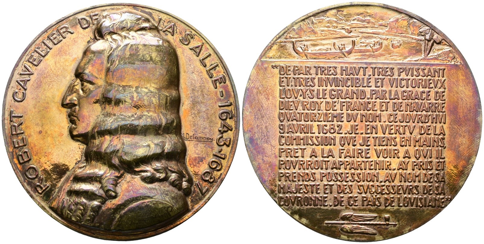 PERSONAGGI. Medaglia Robert Cavelier de la Salle (1643-1687). AE. 65mm. Lucidata. BB+