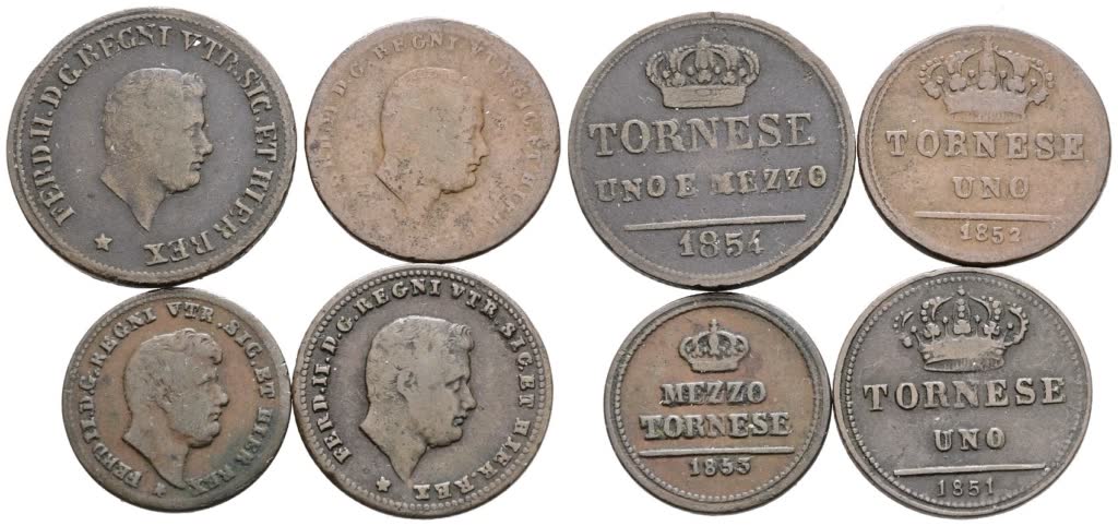 Lot 1351 | NAPOLI. REGNO DELLE DUE SICILIE. Ferdinando II di Borbone (1830-1859). Lotto di 4 monete da 1,5 tornesi, 1 e 1/2 tornese. Cu; date e conservazioni varie.