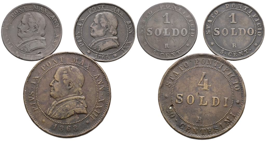 STATO PONTIFICIO. ROMA. Pio IX(1846-1870). Lotto di 3 monete da 4 soldi e 1 soldo. Cu; Anni e conservazioni differenti.