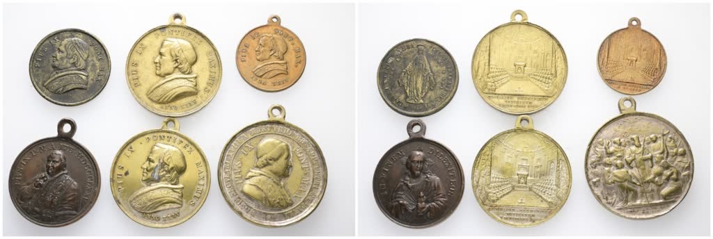 STATO PONTIFICIO. Pio IX (1846-1878). Lotto di 6 medaglie devozionali di PIO IX. Metalli, diametri e CONSERVAZIONI VARIE