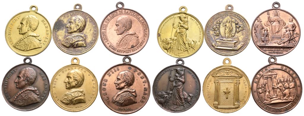 ROMA. Leone XIII (1878-1903). Interessante lotto di 6 medaglie portative. Dimensioni e metalli vari. CONSERVAZIONI VARIE