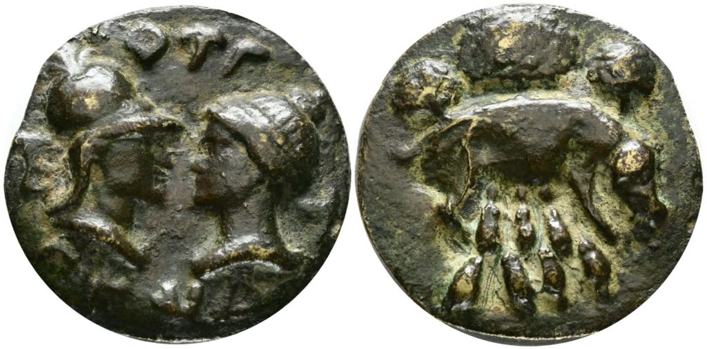 VARIE. Falso di fantasia del 900 di medaglione romano con scrofa e due busti affrontati. Ae; 62mm