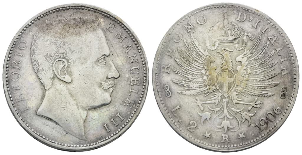 REGNO D'ITALIA. Vittorio Emanuele III (1900-1943). 2 lire 1906 "Aquila sabauda". Interessante falso d'epoca. 10gr; Gig. 93; BB