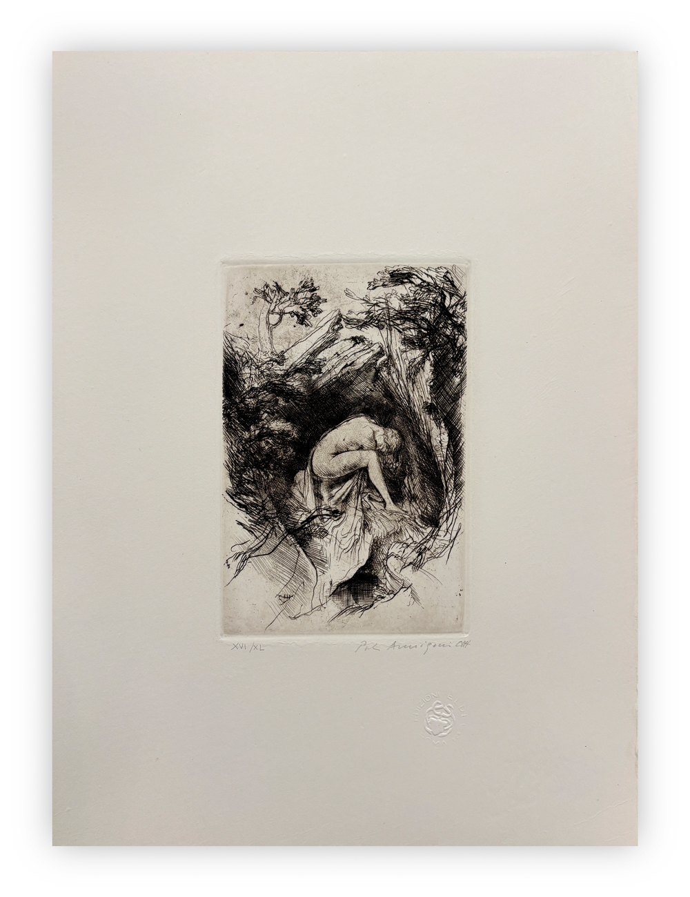 Firma e numerazione (Esemplare XVI/L) a matita al fronte