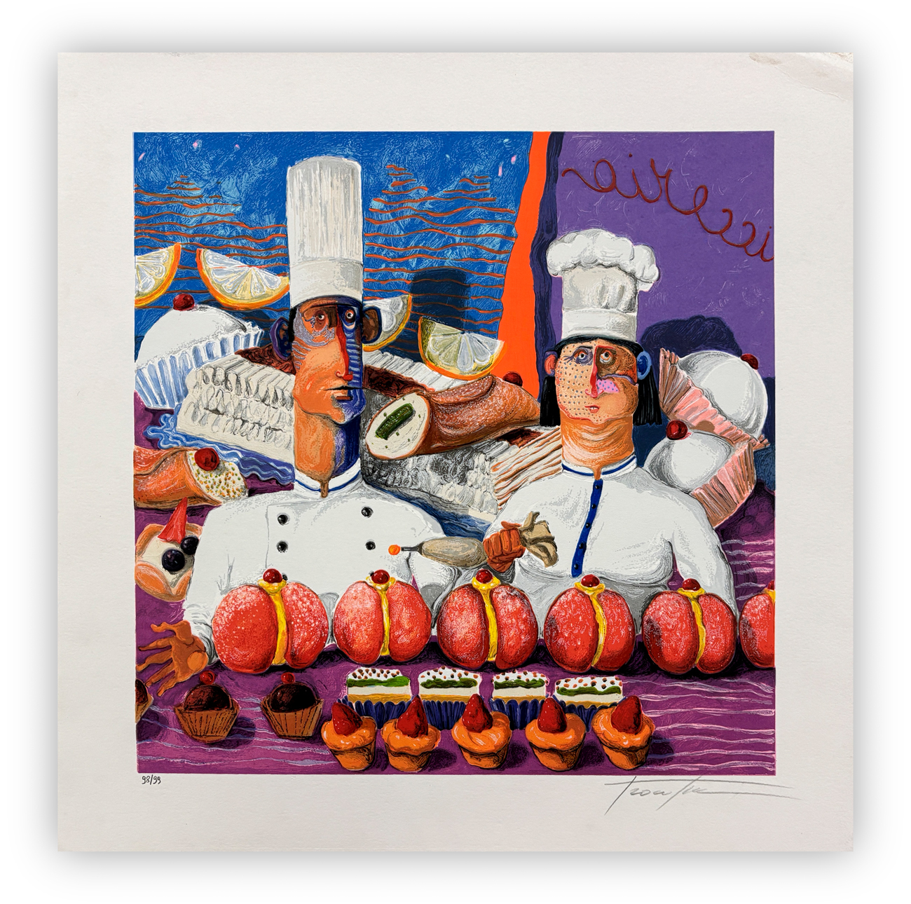 Firma, titolo e numerazione (Esemplare 98/99) a matita al fronte