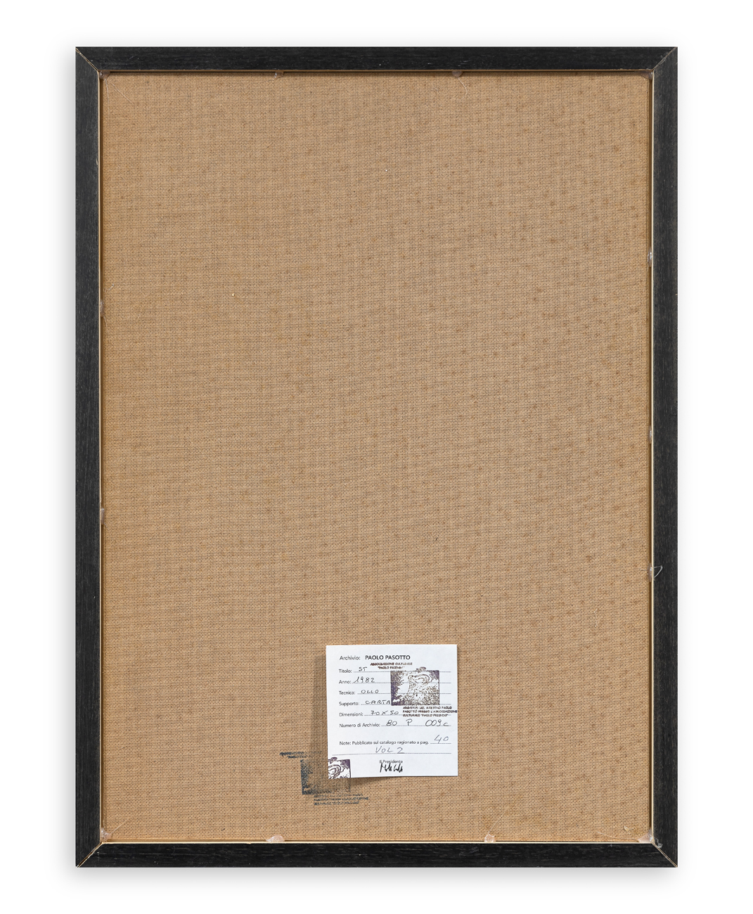 Etichetta dell'Archivio Paolo Pasotto al retro