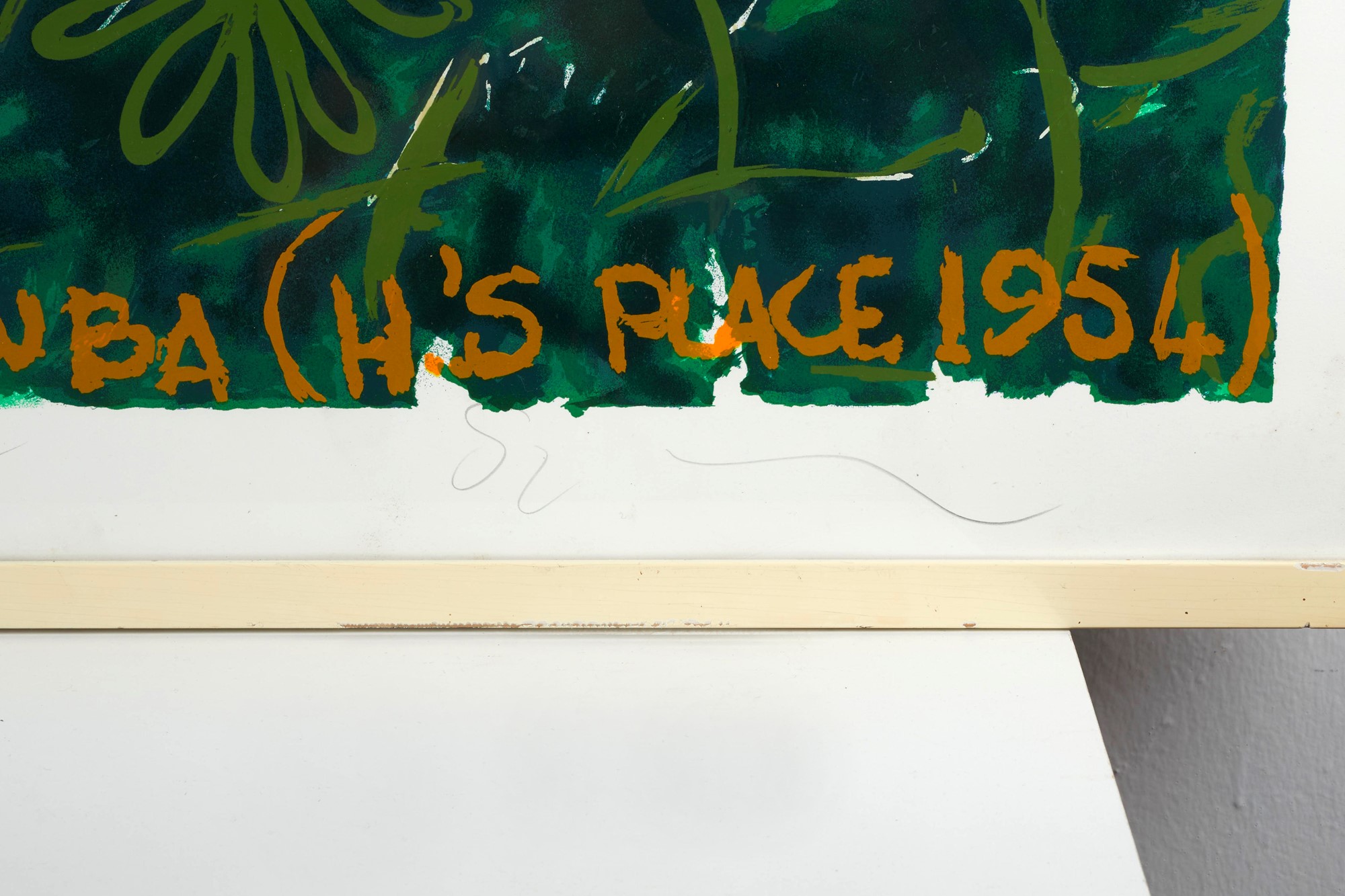 MARIO SCHIFANO (Homs 1934 - Roma 1998) "Cuba (H's place 1954)". Serigrafia a colori su carta. Cm 80x120. Opera firmata in basso a destra Schifano. Reca scritta al centro prove 6 buone per Sante.