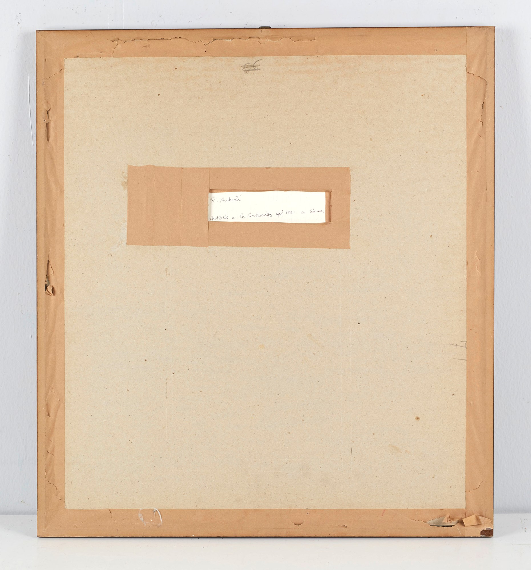 RICHARD ANTOHI "Antohi e Le Corbusier". Tecnica mista e collage su cartoncino. Cm 16x17. Opera firmata in basso a sinistra Antohi. Al retro reca scritta Antohi e Le Corbusier a Roma nel 1961.