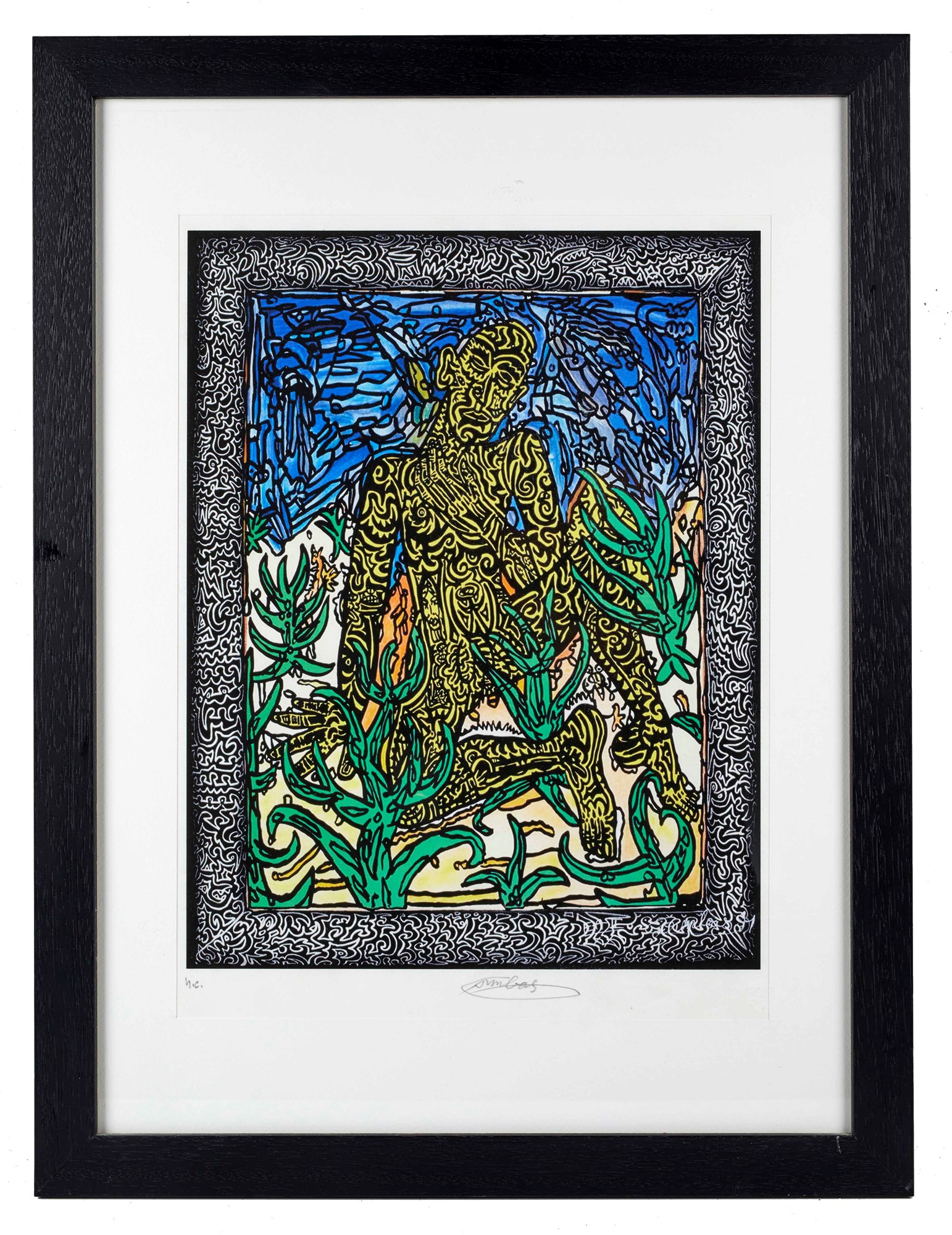 ROBERT COMBAS (Lione 1957) "L'homme jaune", 1990. Litografia a colori su carta. Cm lastra: 42x32,5. Opera firmata in basso a destra Combas. Reca numeri di tiratura in basso a sinistra H. C.