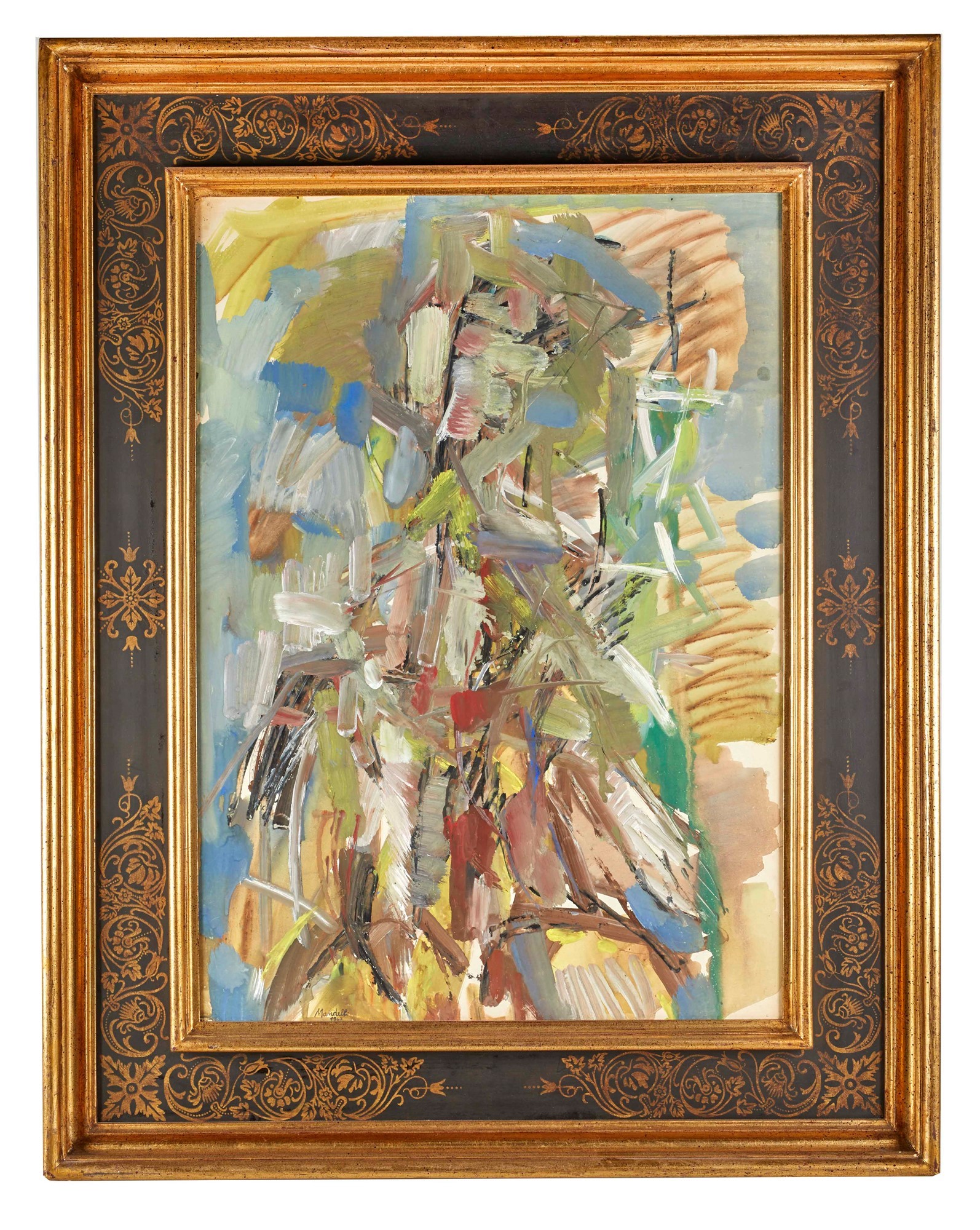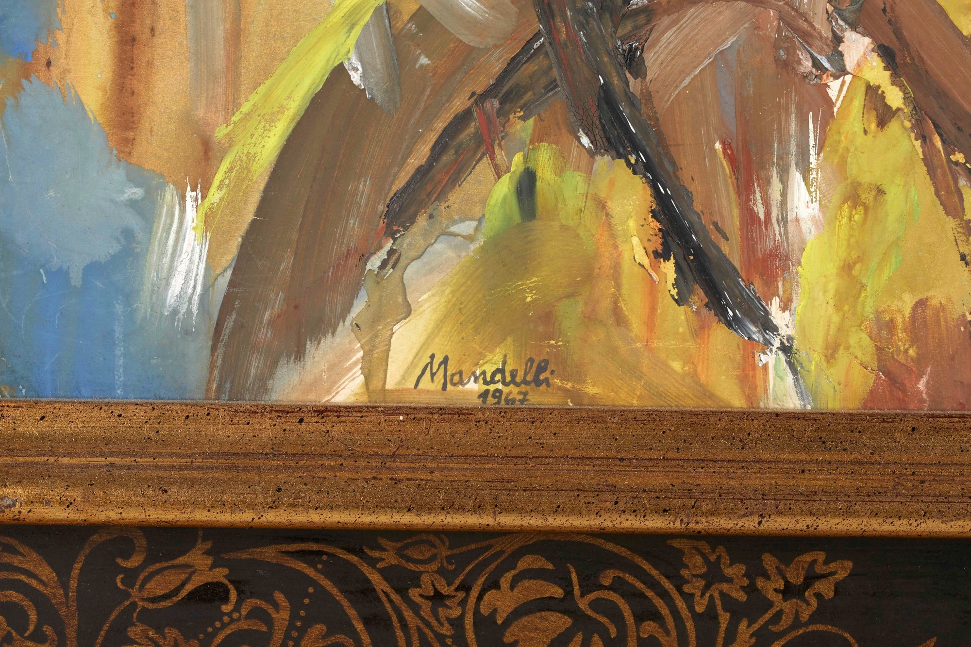 POMPILIO MANDELLI (Luzzara 1912 - Bologna 2006) "Composizione", 1967. Olio e tecnica mista su carta. Cm 70x50. Opera firmata e datata in basso a sinistra Mandelli 1967.