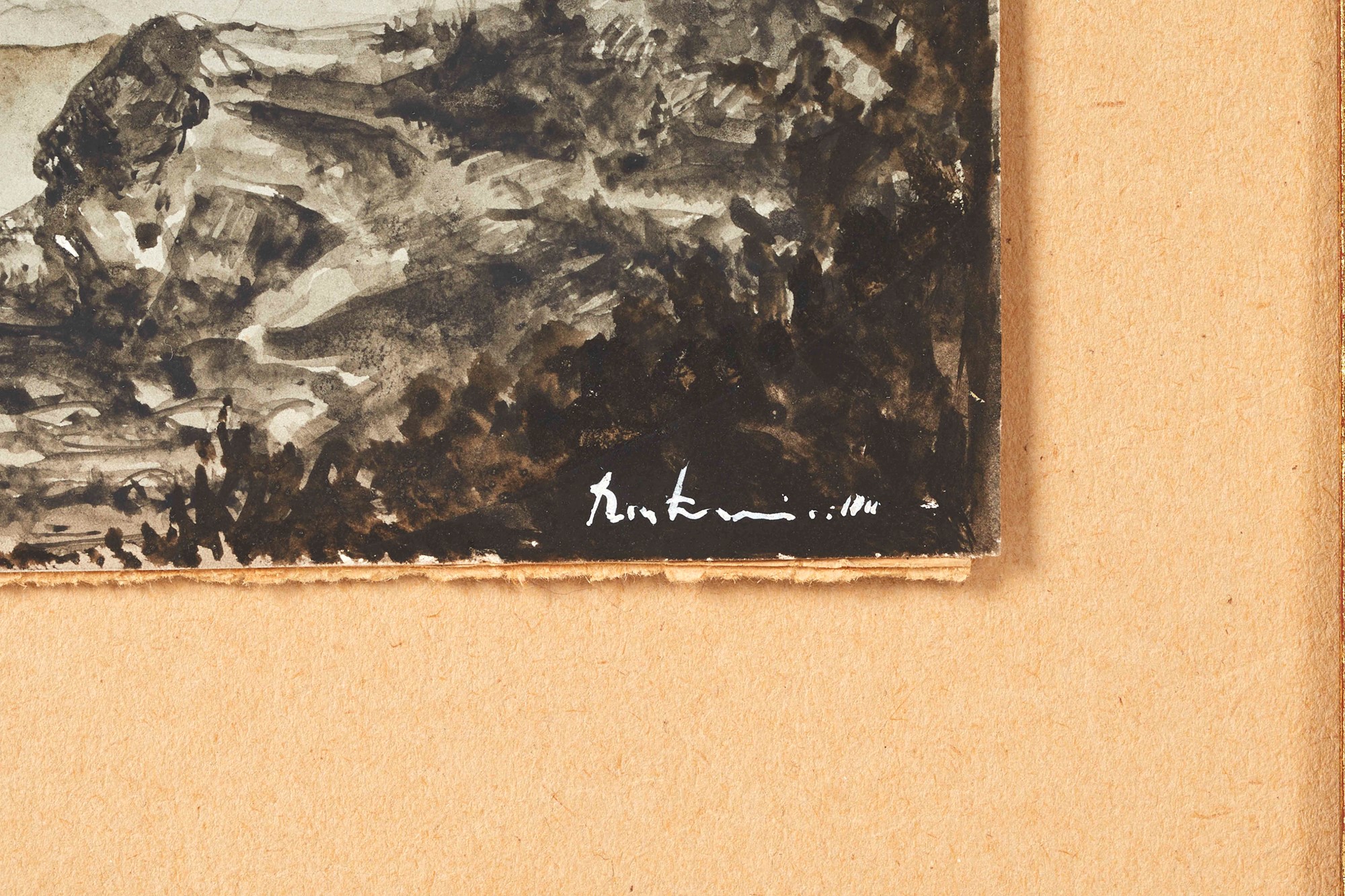FERRUCCIO RONTINI (Firenze 1893 - Livorno 1964) "Senza titolo". Acquerello su carta applicata su cartoncino. Cm 11x18,5. Opera firmata in basso a destra Rontini.