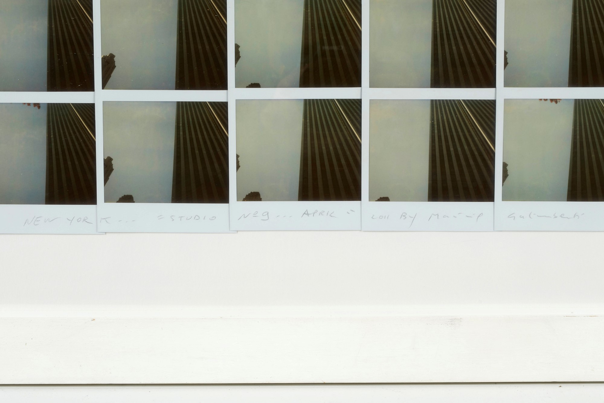 MAURIZIO GALIMBERTI (Como 1956) "New York... Studio n. 9... April", 2011. Fotomontaggio, 45 polaroid su pannello. Cm 75x47,5. Opera intitolata, firmata e datata in basso New York... Studio n. 9... April, by Maurizio Galimberti.