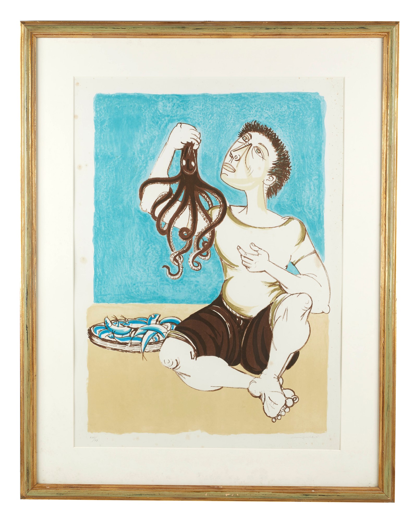 GIUSEPPE MIGNECO (Messina 1903 - Milano 1997) "Senza titolo". Litografia a colori su carta. Cm 70x50. Opera firmata in basso a destra Migneco. Reca numeri di tiratura in basso a sinistra XVII / XX.