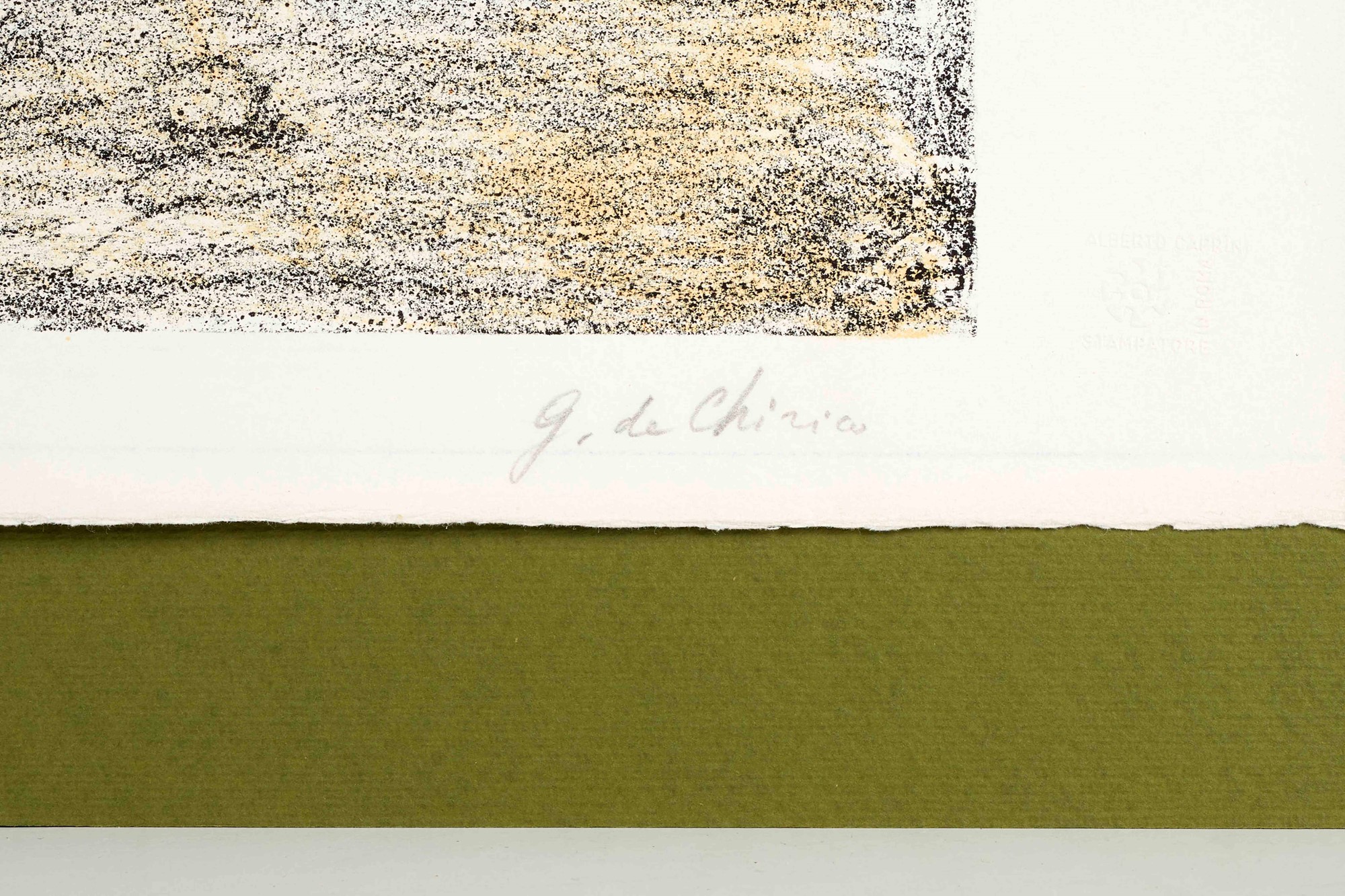 Lot 74 | Giorgio De Chirico (Volo, 10/07/1888 - Roma, 20/11/1978) “Il fiume misterioso” 1969 Litografia a 4 colori su carta Cm 50,5x70