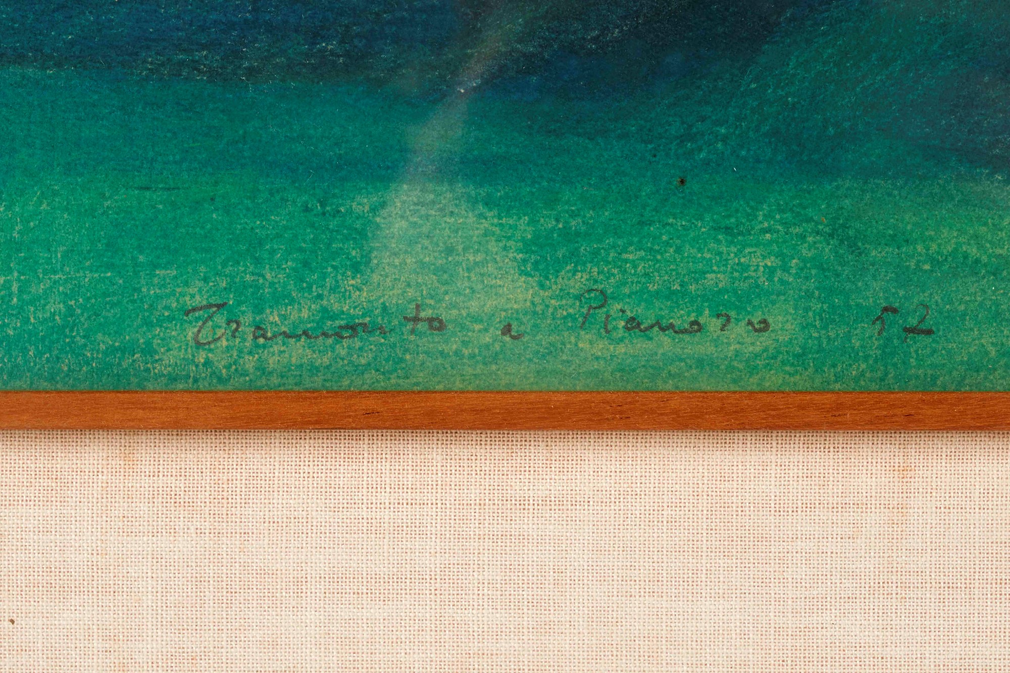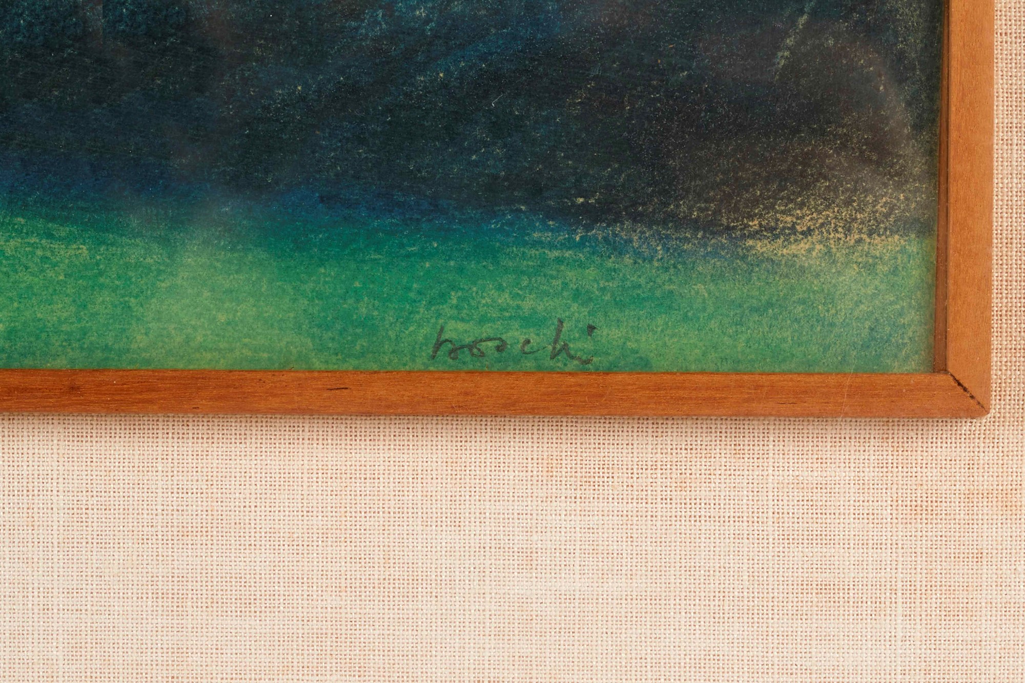 DINO BOSCHI (Bologna 1923 - Bologna 2015) "Tramonto a Pianoro", 1957. Tecnica mista su carta. Cm 22,5x40. Opera firmata in basso a destra Boschi. Opera intitolata e datata in basso a sinistra Tramonto a Pianoro 57.