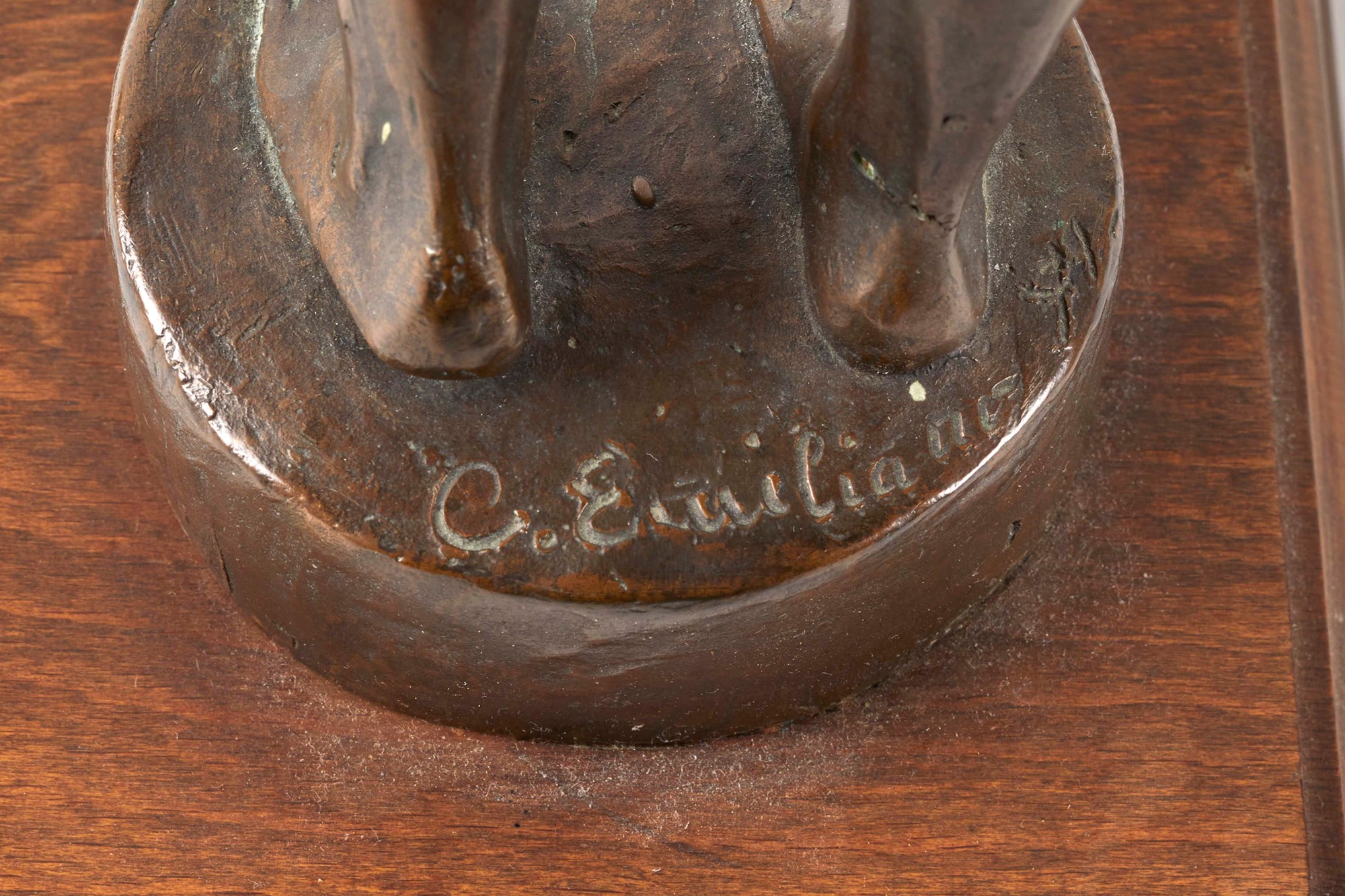 ANONIMO Scultura in bronzo raffigurante Minotauro. Poggia su base in legno. Cm 33,5x13x11. Firma indecifrata alla base.