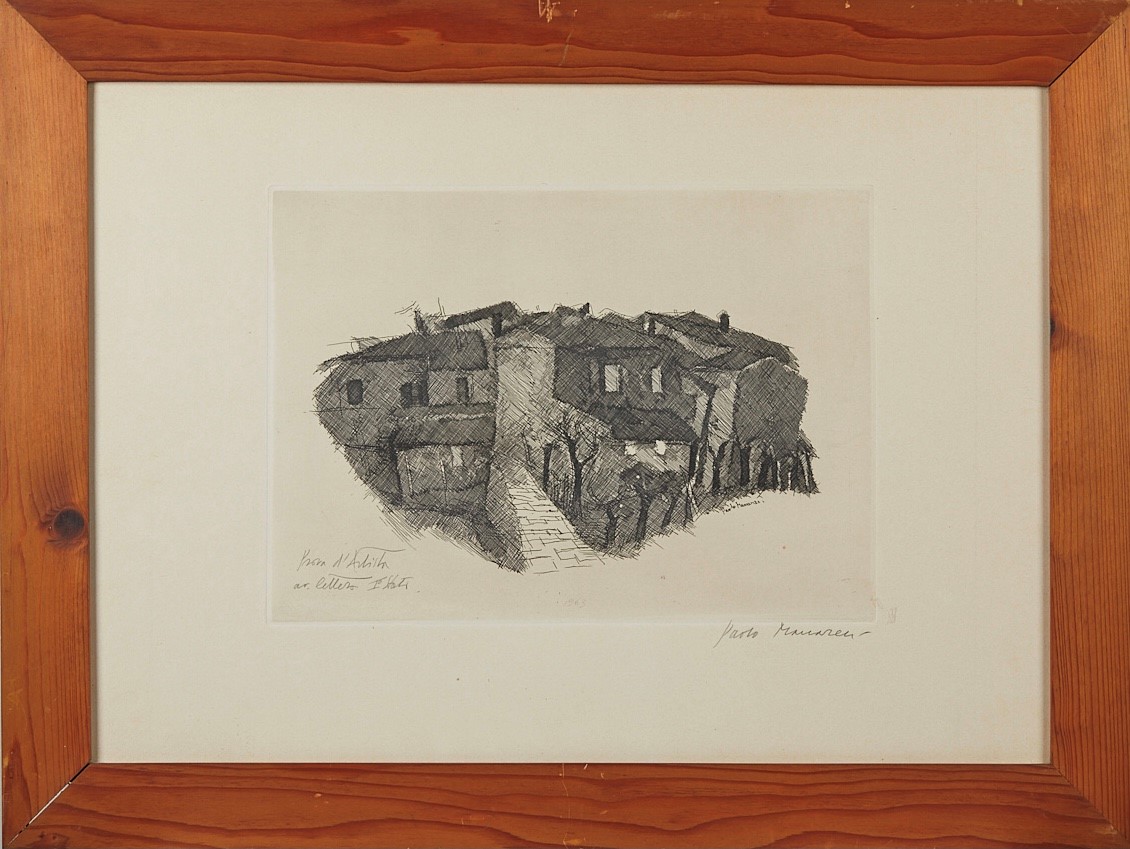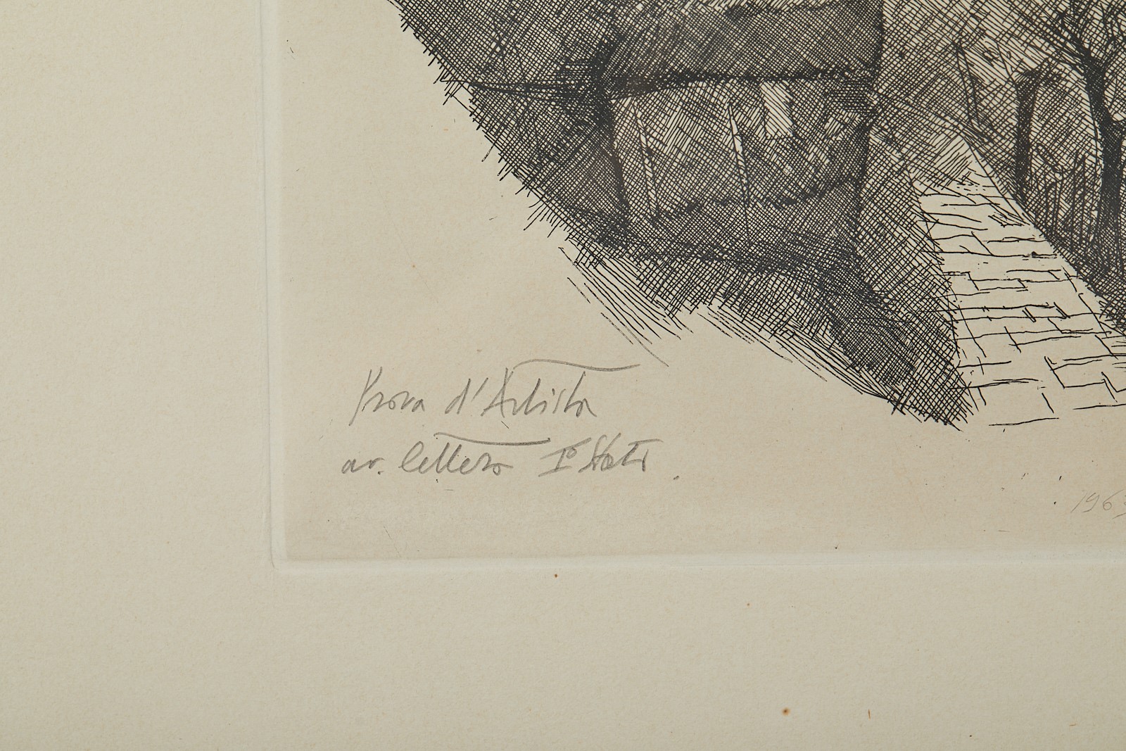 Paolo Manaresi (Bologna, 23/09/1908 - Bologna, 20/07/1991) "Il cortile" 1963 Incisione su carta Cm 50x70