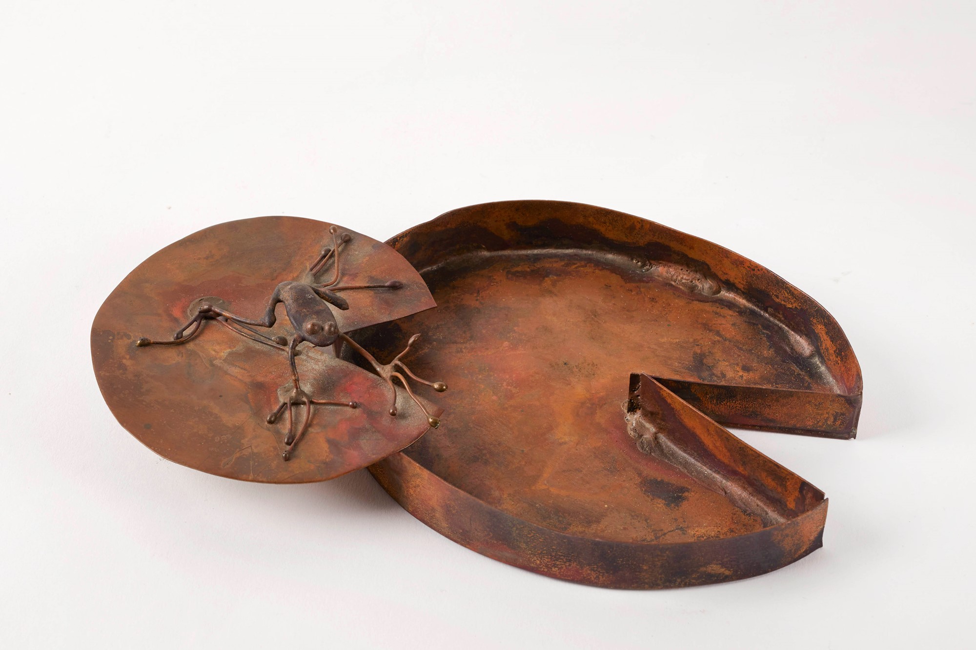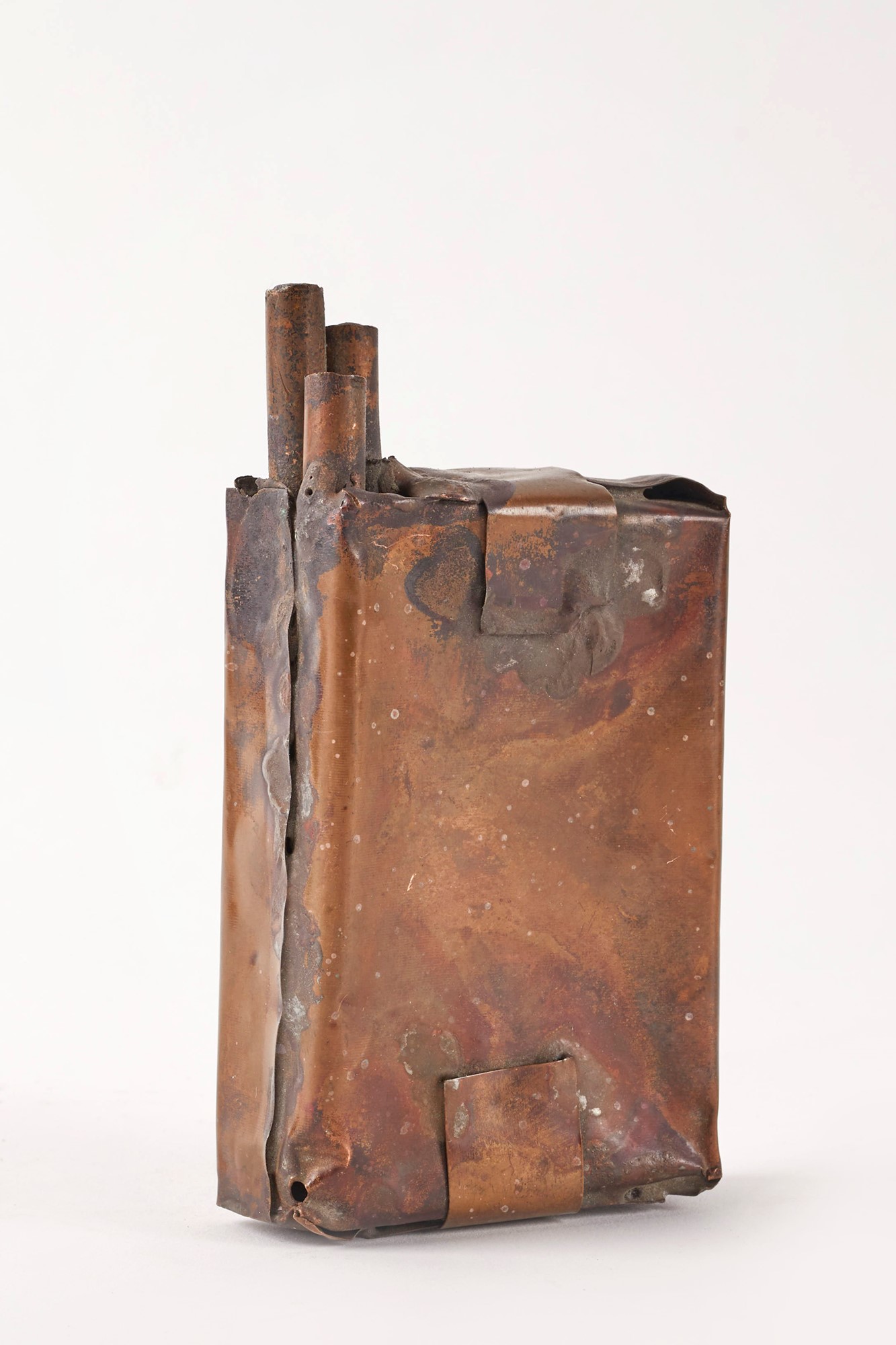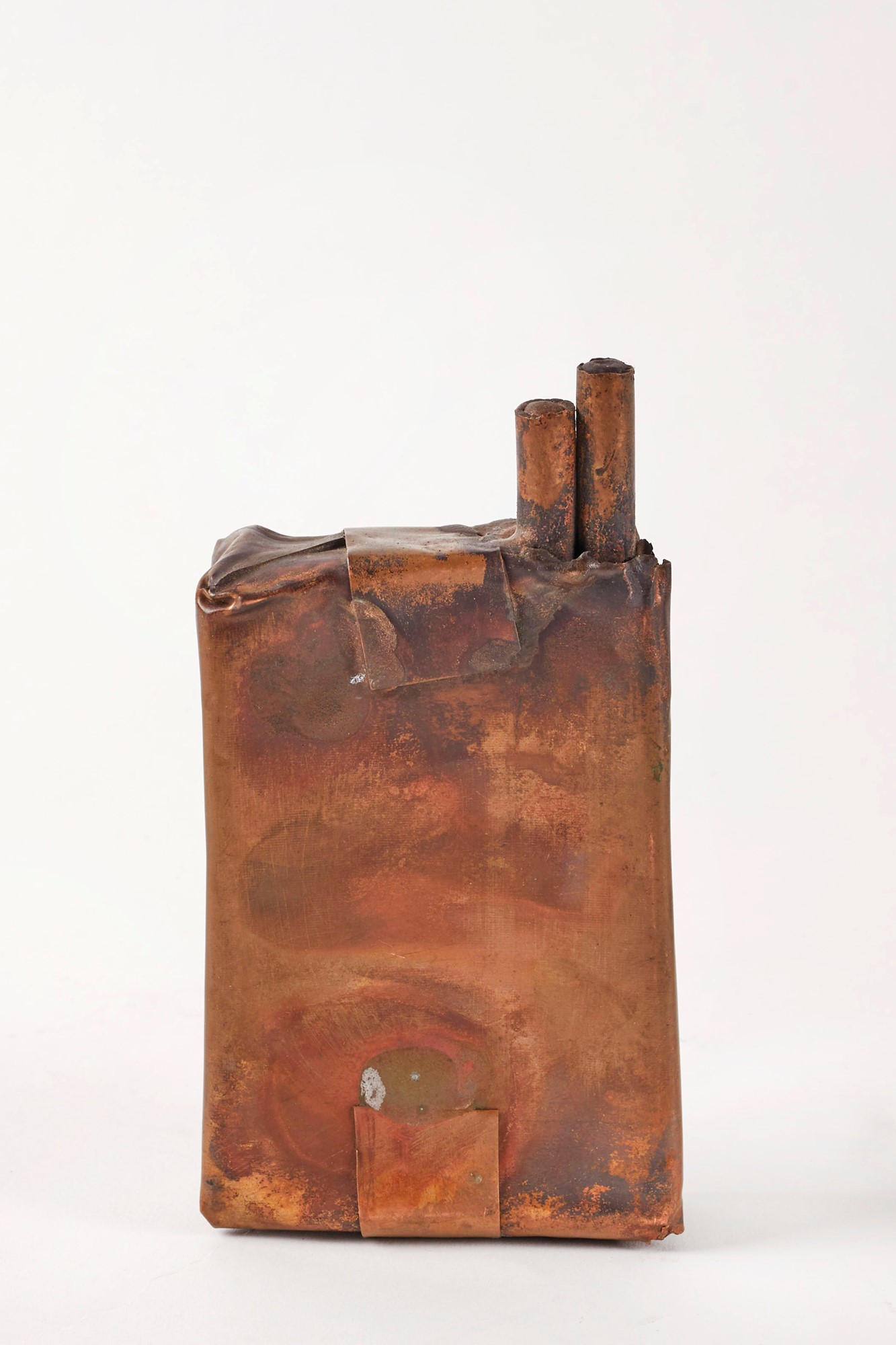 Nicola Zamboni (Bologna, 10/05/1943 - Bologna, 16/01/2023) "Sigarette e posacenere" Sculture in rame Cm 2x21x14,5; 13x6,5x2,5