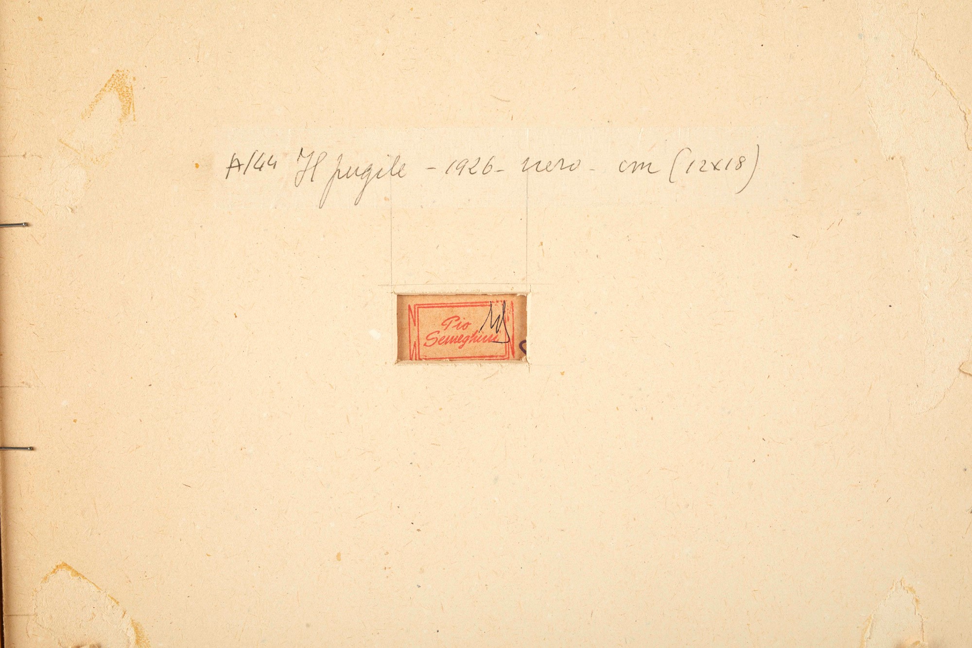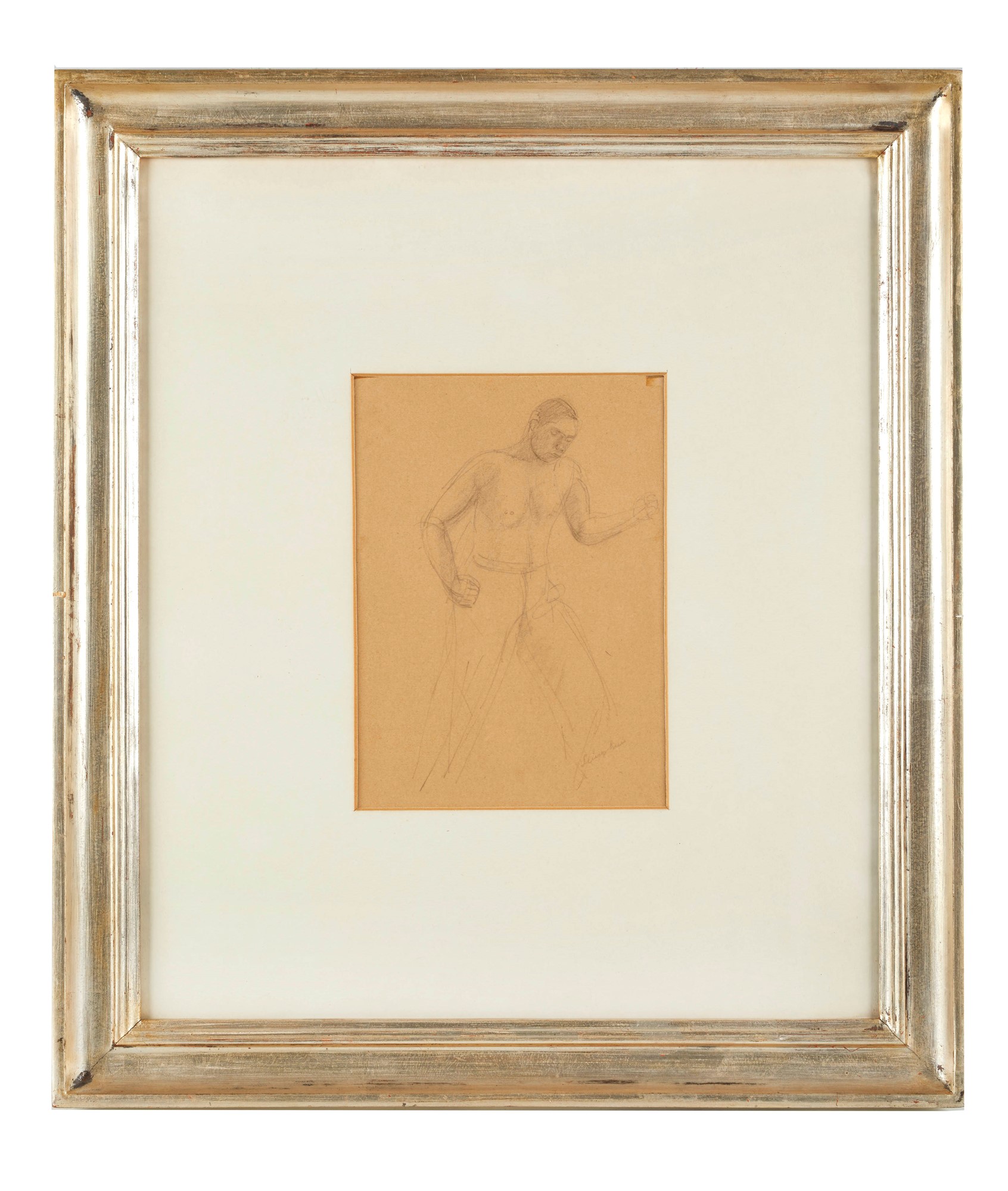 PIO SEMEGHINI (Quistello 1878 - Verona 1964) "Il Pugile", 1926. Cm 19x14. Matita su carta. Opera firmata in basso a destra Semeghini. Opera intitolata al retro Il Pugile. Al retro reca timbro dell'autore. Opera accompagnata da autentica su fotografia dell'Archivio Pio Semeghini, a firma della moglie Gianna Semeghini, in data 1979.
