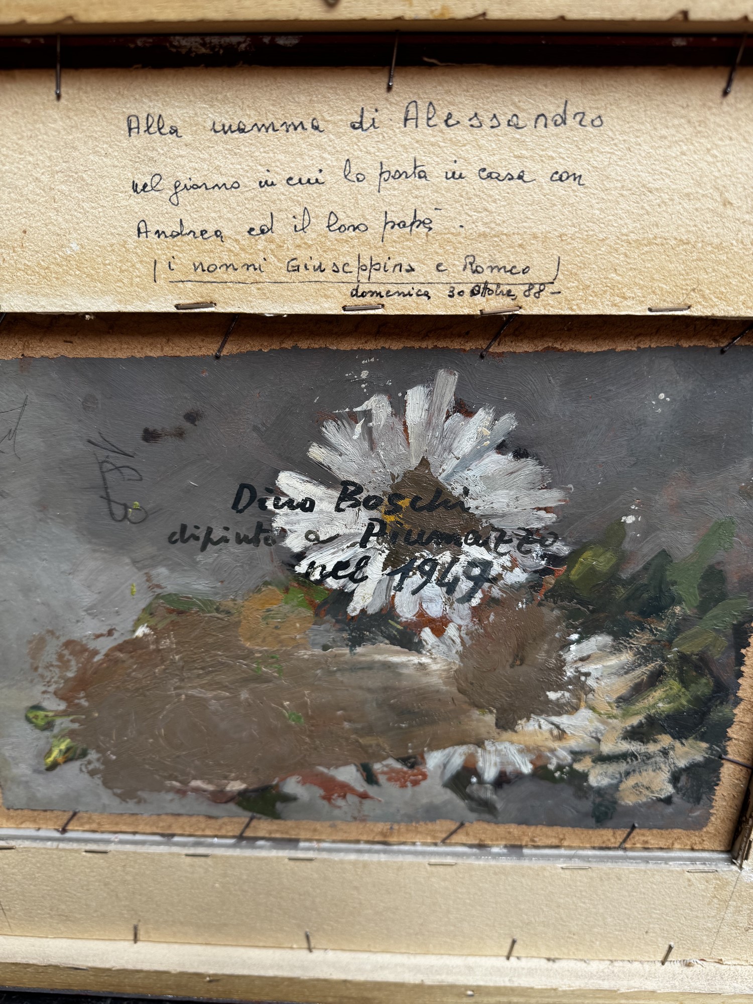 Dino Boschi (Bologna, 30/07/1923 - Bologna, 20/09/2015) “Natura morta” Olio su cartone Cm 38x49,5
