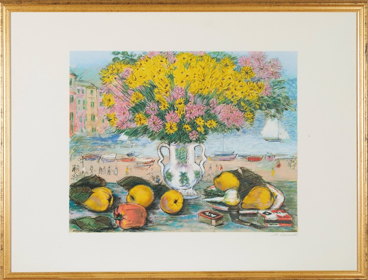 Michele Cascella (Ortona, 07/09/1892 - Milano, 31/08/1989) "Natura morta a Portofino" Litografia a colori su carta Cm foglio: 65x86