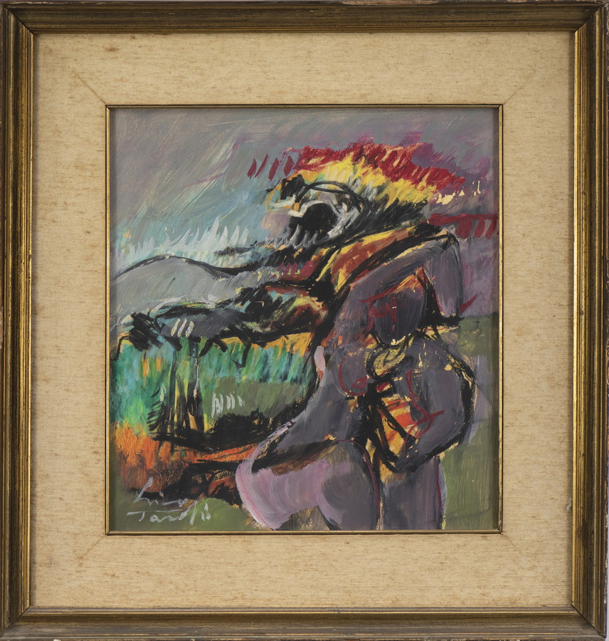 TARDIA LINO (n. 1938) SENZA TITOLO. Olio su cartone. Cm 32,00 x 34,50. firma. Cornice presente