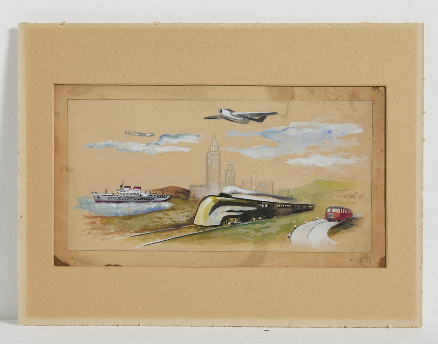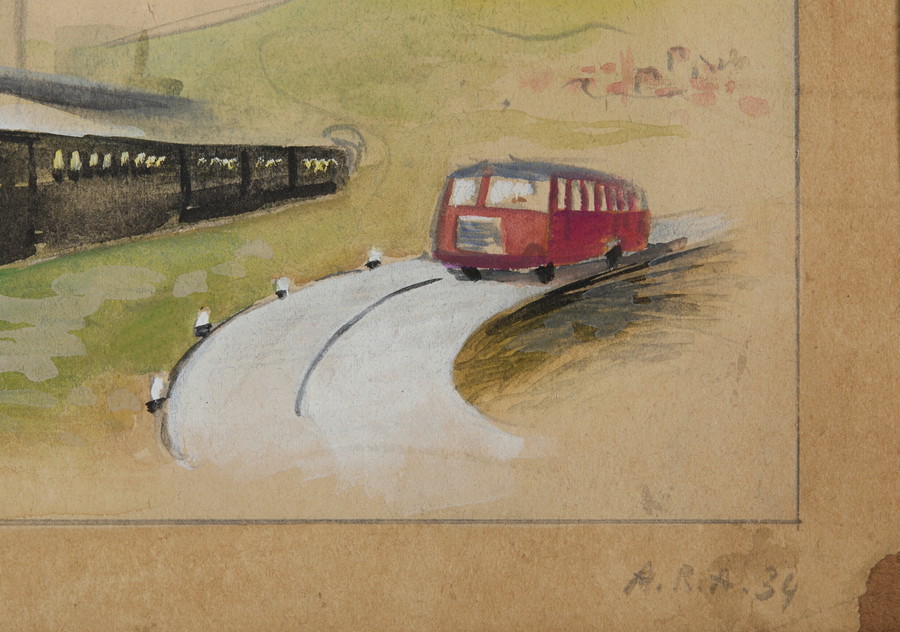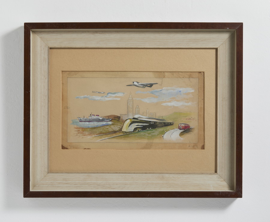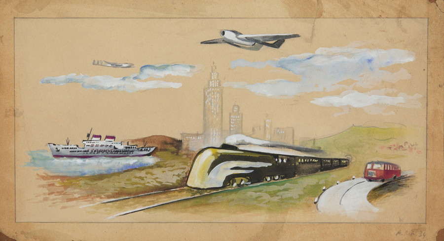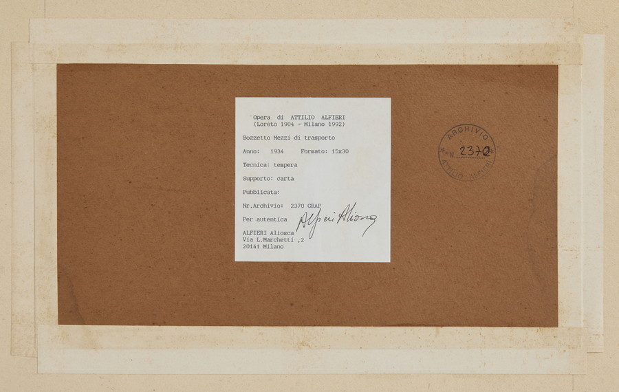 ALFIERI ATTILIO (1904 - 1992) BOZZETTO MEZZI DI TRASPORTO. 1934. Tempera su carta. Cm 34,00 x 19,00. firma e data