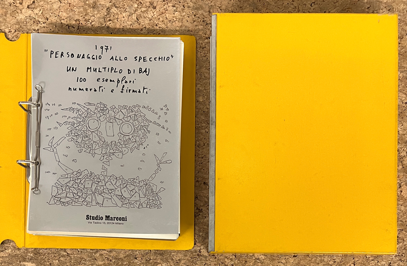 Raccoglitore ad anelli contenente numerosi cataloghi editi in occasioni di esposizioni tenutesi presso Studio Marconi, Milano, tra il 1970 e il 1971: