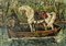GIOVAN FRANCESCO GONZAGA, "Trasbordo sul fiume", anni 2000, serigrafia materica su tela, 50x70 cm, esemplare XXXVI/C. Al fronte: tiratura in basso a destra, firma in basso a sinistra. Al verso: timbro al centro con firma. Opera con certificato di provenienza della Daliano Ribani Arte. Opera senza cornice.