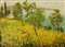 MICHELE CASCELLA, "Casa in collina", 1983, serigrafia e litografia a 30 passaggi di colore, opera in 300 esemplare in numeri arabi + C numeri romani e alcune prove d'autore. Al fronte in basso a sinistra esemplare 184/300 e in basso a destra firma. Al verso: informazioni e tiratura in basso a sinistra. Opera con certificato di provenienza della Daliano Ribani Arte. Opera senza cornice.