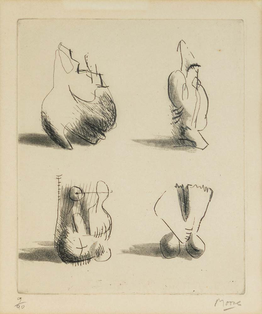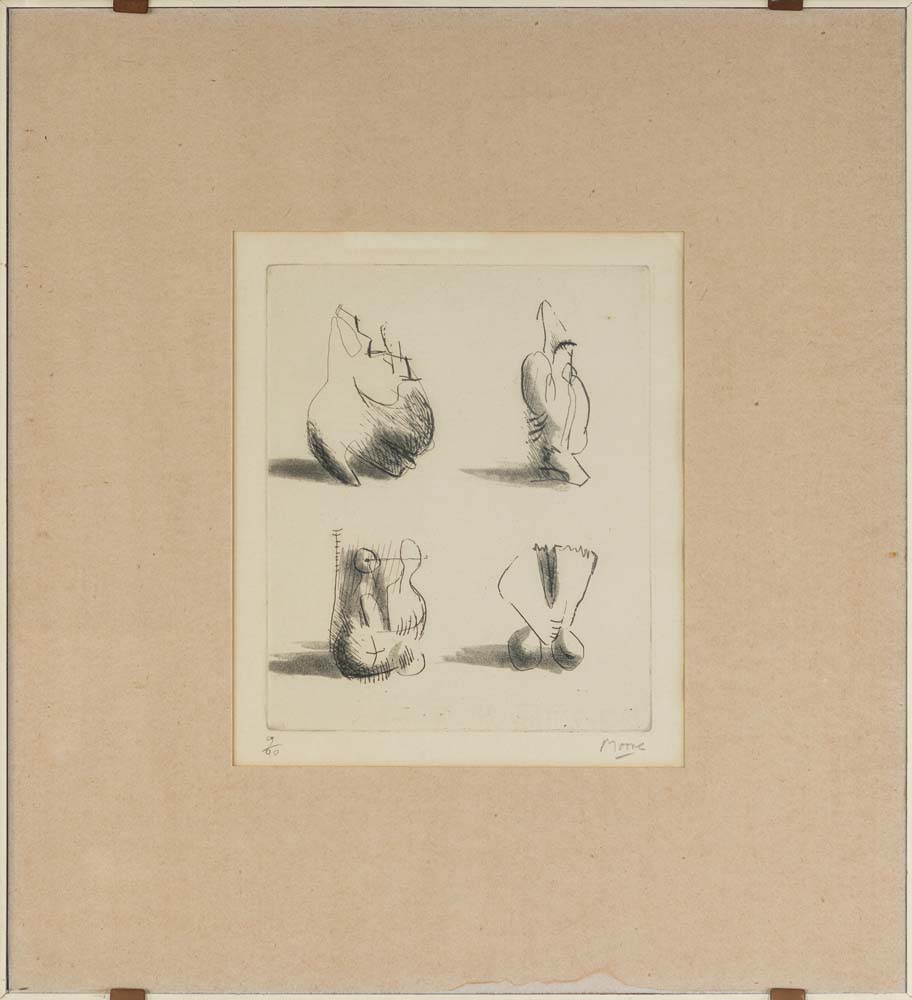 Four Sculpture Motives 1971 Firma e numerazione "Moore 9/90" Acquaforte cm 20x16,5 (lastra) - in cornice cm 43x40