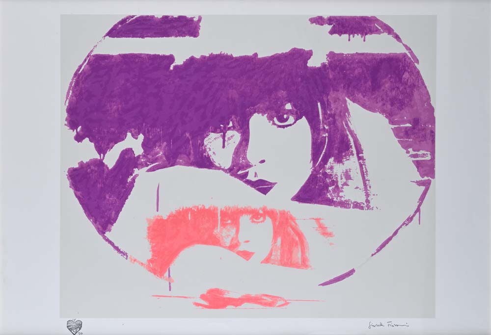 Doppio liberty magenta Firma e numerazione "Giosetta Fioroni 18/99". Timbro in basso a sinistra studio Goffredo Parise e Giosetta Fioroni Serigrafia cm 70x100 - in cornice cm 80x110